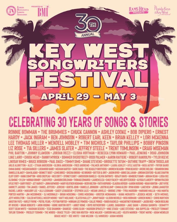 BMI, the Florida Restaurant & Lodging Association, and Rams Head Present…The 30th Annual Key West Songwriters Festival, taking place April 29-May 3.