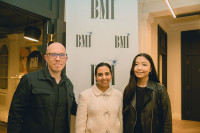 BMI’s Anu Gantumur, Martin Evans (Raw Kingdom Management), and BMI’s Jon Miller at BMI London’s holiday mixer. View Photo