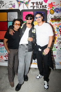 (L-R) RC Marroquin, Dani Castro (Los De FL), and Uriel Frenchie Kadouch at the BMI x LVMH “Celebración de Arte” event during Art Basel, hosted at the Palm Court Event Space in the Miami Design District on Saturday, December 6, 2025. View Photo