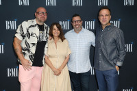 (L-R) Dominic Lewis, BMI’s Tracy McKnight, Christopher Lennertz, and Carlos Rafael Rivera at BMI’s Emmy Brunch on Thursday, September 4, 2025, in Beverly Hills, CA. View Photo