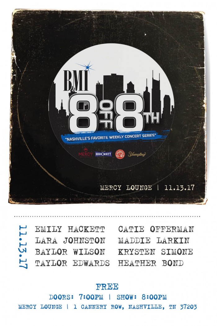 BMI & YEP (Young Entertainment Professionals) present “BMI 8 off 8th” at The High Watt (1 Cannery Row, Nashville, TN).