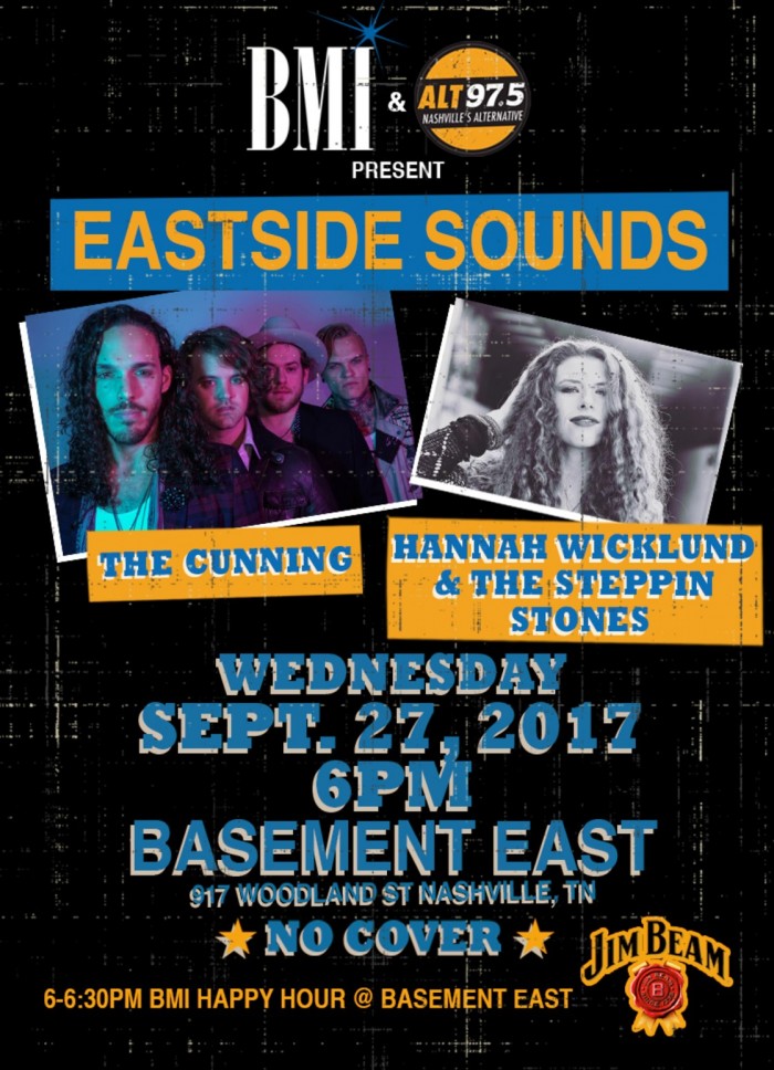 BMI & ALT 97.5 Present “Eastside Sounds” at The Basement East (917 Woodland Street, Nashville, TN) at 6:00 PM. Admission: FREE!