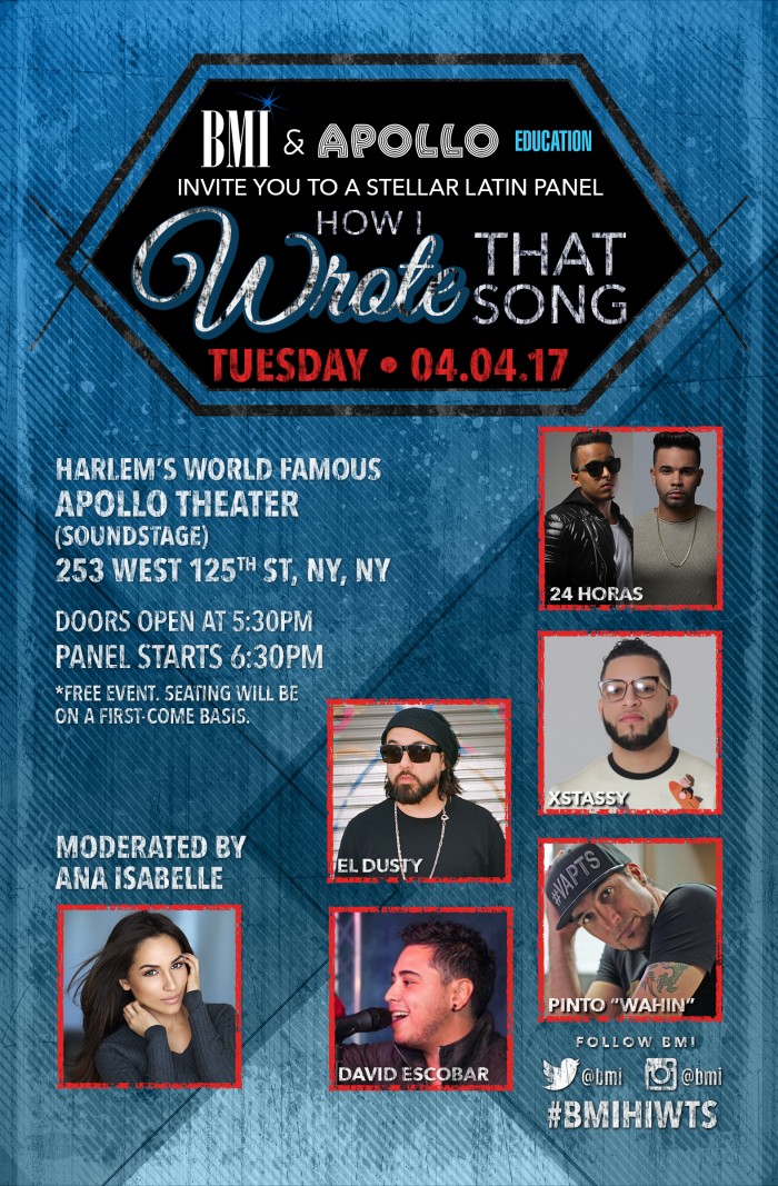 BMI and The Apollo Theater Present ’How I Wrote That Song ‘La Historia Detras De Una Cancion’ at the legendary Apollo Theater (253 W. 125th Street, New York City).