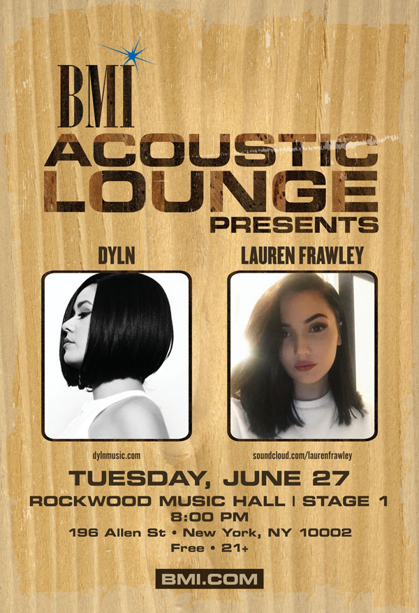Singer/songwriter showcase series featuring acoustic performances in an intimate setting as well as networking opportunities with other songwriters and BMI representatives at Rockwood Music Hall, Stage 1 (196 Allen Street, NYC) at 8:00 PM.