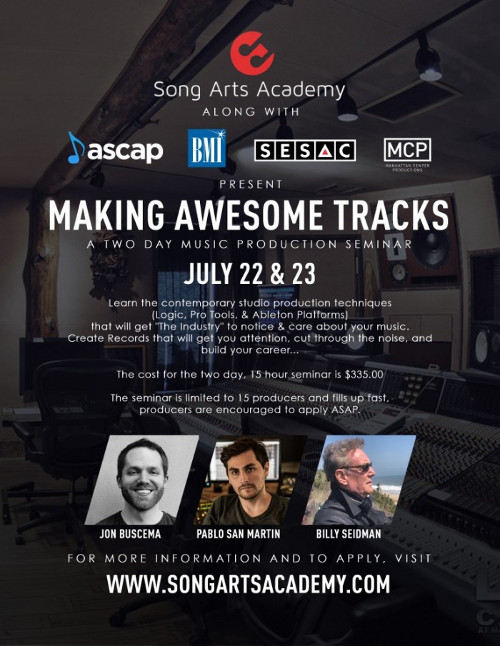 BMI is proud to support The Song Arts Academy’s two-day music production seminar, “Making Awesome Tracks,” July 22 and July 23.
