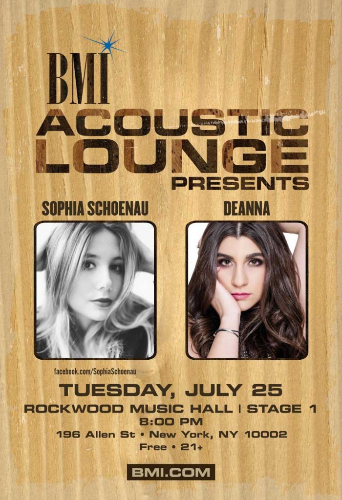 Singer/songwriter showcase series featuring acoustic performances in an intimate setting as well as networking opportunities with other songwriters and BMI representatives at Rockwood Music Hall, Stage 1 (196 Allen Street, NYC) at 8:00 PM.