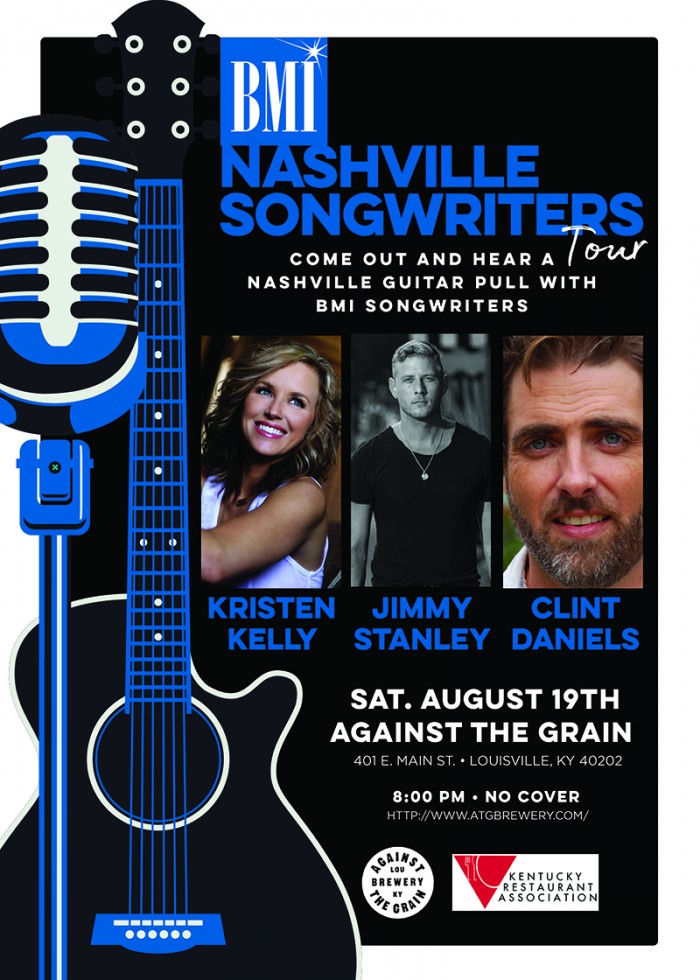 BMI Nashville Songwriters Tour, in association with Against the Grain Brewery and Kentucky Restaurant Association, will take place at Against the Grain Brewery (401 E. Main Street, Louisville, KY) at 8:00 PM.