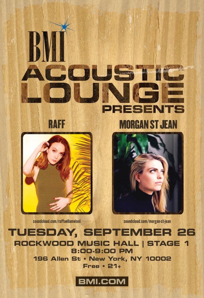Singer/songwriter showcase series featuring acoustic performances in an intimate setting as well as networking opportunities with other songwriters and BMI representatives at Rockwood Music Hall, Stage 1 (196 Allen Street, NYC) at 8:00 PM.