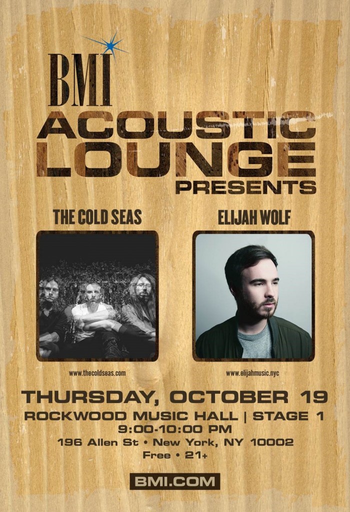 Singer/songwriter showcase series featuring acoustic performances in an intimate setting as well as networking opportunities with other songwriters and BMI representatives at Rockwood Music Hall, Stage 1 (196 Allen Street, NYC) at 9:00 PM.