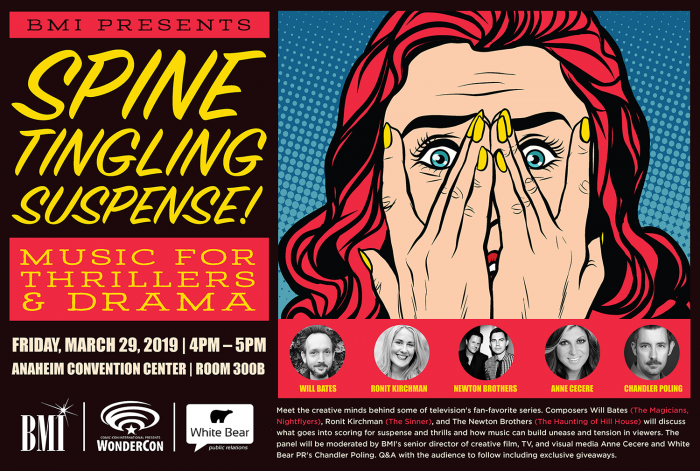 BMI, along with White Bear PR, presents “Spine-Tingling Suspense: Music For Thrillers & Drama” at the Anaheim Convention Center (800 W Katella Avenue, Anaheim, CA 92802), Room 300B; 4:00-5:00PM. Come meet the creative minds behind some of television’s fan-favorite series and hear about what goes into scoring for suspense and thrills.