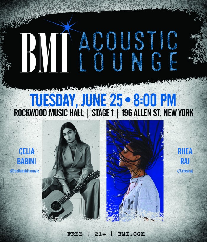 Singer/songwriter showcase series featuring performances in an intimate setting as well as networking opportunities with other songwriters and BMI representatives at Rockwood Music Hall Stage 1 (196 Allen Street, NYC) at 8:00 PM.