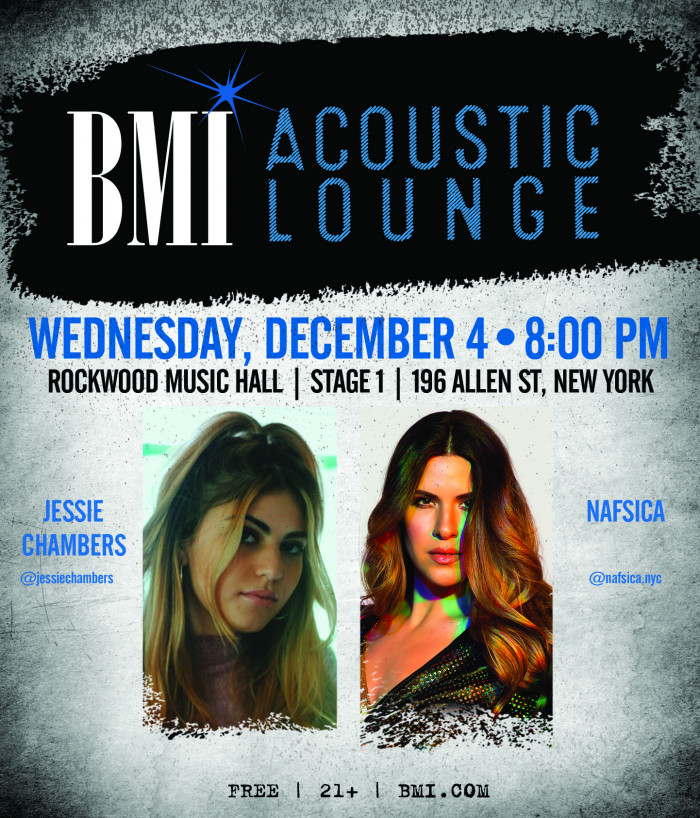 Singer/songwriter showcase series featuring performances in an intimate setting as well as networking opportunities with other songwriters and BMI representatives at Rockwood Music Hall Stage 1 (196 Allen Street, NYC) at 8:00 PM.