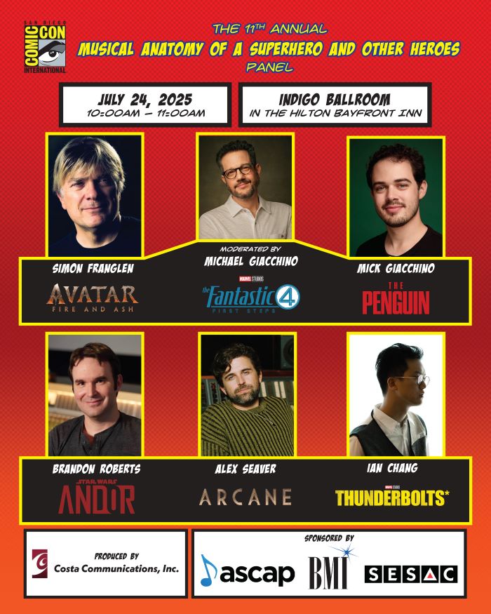 BMI is proud to be a co-sponsor of Costa Communications’ “Musical Anatomy of a Superhero and Other Heroes” panel at Comic-Con International 2025, 10:00-11:00 AM at the Indigo Ballroom in the Hilton Bayfront Inn.