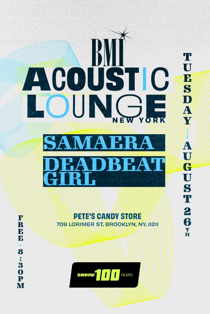 BMI Acoustic Lounge at Pete’s Candy Store (709 Lorimer Street, Brooklyn, NY), 8:30PM. Admission is FREE!