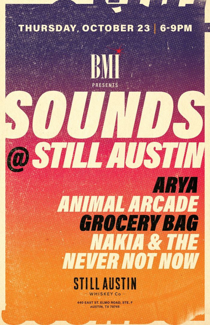 BMI Presents Sounds @ Still Austin Whiskey Co. (440 E St Elmo Rd Suite F, Austin, TX), 6:00-9:00PM.