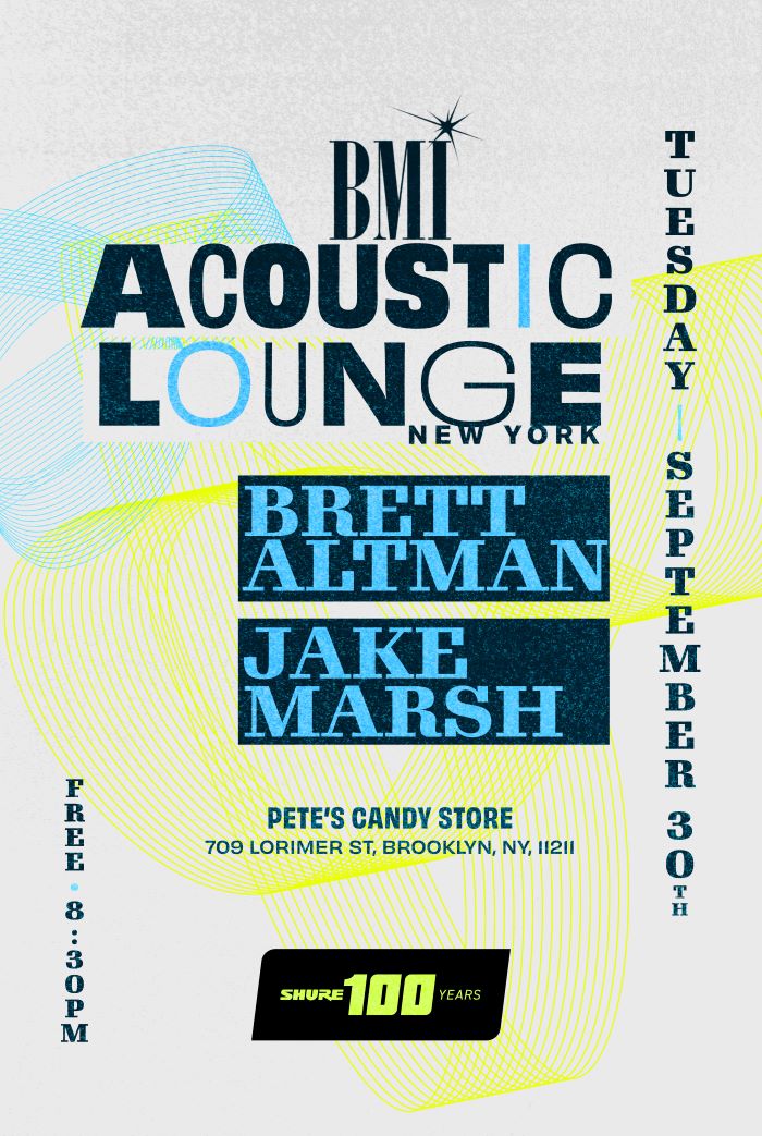 BMI Acoustic Lounge at Pete’s Candy Store (709 Lorimer Street, Brooklyn, NY), 8:30PM. Admission is FREE!