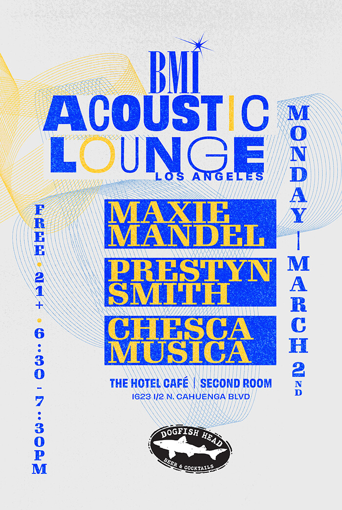 BMI Acoustic Lounge is taking place at The Hotel Café (1623 1/2 N. Cahuenga BLVD) at 6:30PM.