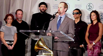 NARAS recently announced that the first annual Latin Grammy Awards will be held September 15 in Los Angeles. Although the venue has yet to be determined, the program will be a live primetime telecast on CBS. BMI songwriters Gloria & Emilio Estefan, Robi Draco Rosa, Juan Luis Guerra, Johnny Polanco, Cristina Abaroa and Abel De Luna were at the press conference to support the awards, along with BMI's Associate Director of Latin Music, Delia Orjuela.