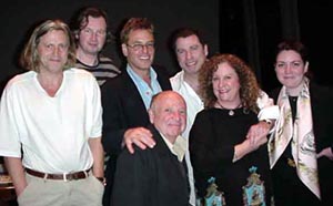 ![]() Shown congratulating Cmiral are (l to r): Roger Christian, Director; Cmiral; Jonathan Krane, Producer; Lyn Stalmaster, Casting Director; Travolta; BMI's Linda Livingston; and Barbara Ruiz, Producer. |