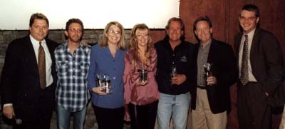 During the presentation of plaques and commemorative cups, EMI's Gary Overton said Smith's songs have shown up in five single records so far, four of which reached the top of the country chart. Her other #1 titles are "Single White Female" (Chely Wright), "One Boy, One Girl" (Collin Raye) and "That's Why I'm Here" (Kenny Chesney). Smith's songs are co-published by Mark Alan Springer Music. Pinpointed for special praise during the party were album producer Keith Stegall and Luke Lewis, president of Mercury Records/Nashville, who signed her to the label.