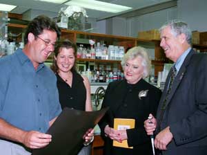 ![]() Vince Gill, Amy Grant and Frances Preston tour the lab with Vanderbilt-Ingram Cancer Center Director Dr. Hal Moses |