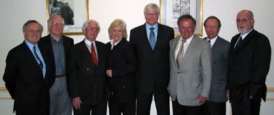 ![]() Pictured at their Board Meeting on Sunday (1/20/2002) during MIDEM are society chief executives who form the Board of Directors of FastTrack, the Digital Copyright Network. They are (from left) Bernard Miyet (SACEM), Eduardo Bautista (SGAE), Prof. Dr. Reinhold Kriele (GEMA), Frances Preston (BMI), FastTrack Managing Director Chris van Houten, Alfred Meyer (SUISA), Helmut Steinmetz (Austro-Mechana) and Jacques Lion (SABAM). Not present for the photo were Board members Mauro Masi (SIAE) and Manfred Brunner (AKM). Photo: Robbin Ahrold for FastTrack |