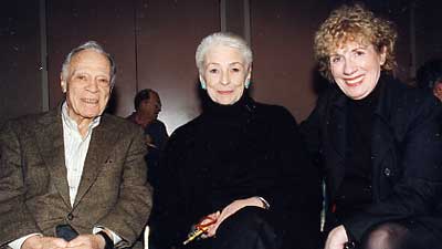 91-year-old Cy Feuer (left), producer of such legendary Broadway shows as "Where’s Charlie," "Guys and Dolls," "Silk Stockings" and "How to Succeed in Business Without Really Trying," was recently a guest at the Lehman Engel Musical Theatre Workshop where he was interviewed by BJ Bjorkman, a member of the Workshop's advanced group. Pictured with Feuer are Bjorkman and BMI's Jean Banks.