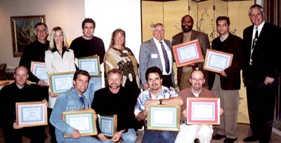 ![]() Gathered after the awards presentation are (back row) Sparrow’s Rick Cua, Arista’s Teddy Bonadies, Lonestar’s Michael Britt, American Songwriter magazine's Vernell Hackett and Jim Sharp, Destiny’s Child’s Alvin Williams, Word’s Shawn McSpadden, BMI’s Paul Corbin; (front row) Cabinetmaker Music’s James Elliott, Lonestar’s Richie McDonald, Frank Myers, Gary Baker and Sony/ATV’s Terry Wakefield. |