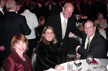 Jonathan Tisch (standing) visits with members of the BMI staff at the Hospitality Heritage Award Dinner Tribute of the American Hotel & Lodging Association. The Philadelphia event honored the Tisch family, who founded Loews Hotels, for their professional achievements and commitment to social responsibility. Jonathan Tisch, Chairman and CEO of the Loews Corporation, also has assisted the National Academy of Recording Arts and Science as a representative of the corporate community of New York. Seated at the table (L-R) are Michele Reynolds, Assistant Vice President, Marketing and Industry Relations, BMI General Licensing; Teresa Stafford-Scherer, Senior Director, BMI General Licensing; and Charlie Feldman, Vice President, BMI Writer/Publisher Relations, New York.