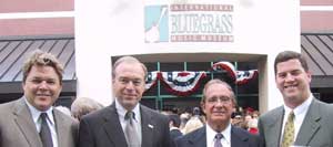 More than 500 bluegrass professionals gathered in Owensboro, Kentucky, for the grand opening of the International Bluegrass Music Museum (IBMM) in Riverpark Center on April 11. Special guests included Kentucky Governor Paul E. Patton, Owensboro Mayor Waymond Morris and nearly two dozen "first generation" bluegrass musicians who helped create the genre. During a VIP reception after the ribbon-cutting ceremonies, musicians Sonny Osborne and Eddie Stubbs (of WSM) unveiled a plaque from the International Bluegrass Music Association (IBMA) with the names of 231 bluegrass pioneers. Among those performing during various grand opening activities were Jim and Jesse McReynolds & the Virginia Boys, Sonny and Bobby Osborne, Rhonda Vincent & the Rage and Tim O'Brien.