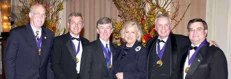 Joining BMI President and CEO Frances Preston (4th from left) at the 54th annual BMI dinner held on April 9 during the National Association of Broadcasters (NAB) conference in Las Vegas are (l-r) John Dille, Federated Media; Paul Karpowicz, Lin Television; David Kennedy, Susquehanna Radio; Preston; BMI Board Chairman Ken Elkins, Pulitzer Broadcasting Co.; and NAB President and CEO Edward Fritts. The gala dinner honors the past and present directors of the NAB and the past directors of the BMI Board.