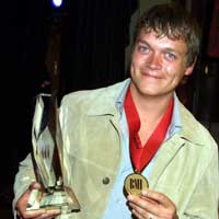 ![]() 3 Doors Down lead singer Brad Arnold shows off his Songwriter of the Year crystal |