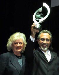 ![]() | BMI President and CEO Frances Preston presents BMI songwriter/producer Emilio Estefan with the 2002 Hope and Harmony Award from the Diabetes Research Institute at a fundraiser at the Billboard Live club in Miami Beach. Preston cited Estefan as "...one of South Florida's most notable humanitarians and philanthropists." The event inaugurated Latin Music Week (May 6-10), featuring the Billboard Latin Music Conference & Awards 2002 and BMI's Latin Awards (May 8). |