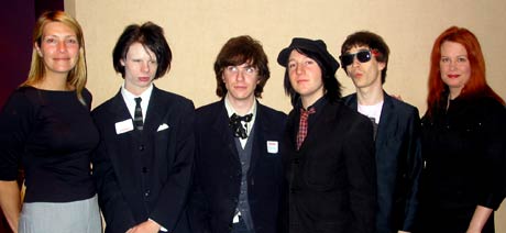 BMI's newest family members, The Star Spangles, stopped by the New York office for a visit. Seen here after signing on the dotted line are BMI's Samantha Cox, band members Ian Wilson, Tommy Volume, Nick Price and Joey Valentine, and BMI's Leslie Morgan.