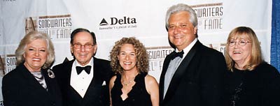 ![]() BMI songwriter and Johnny Mercer Award recipient Carole King (center) is congratulated by BMI President/CEO Frances Preston, Songwriters Hall of Fame Chairman/CEO Hal David, EMI Music Publishing Chairman/CEO Marty Bandier and Songwriters Hall of Fame President Linda Moran |