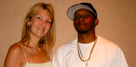 BMI songwriter/producer Sacario (right) stops by the New York office to chat with BMI's Samantha Cox. The young rapper is featured with Lil' Mo on Angie Martinez's hot new single, "If I Could Go," from her upcoming album Animal House. He also wrote all the songs on the album.