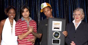 BMI's Catherine Brewton, producers Chad Hugo and Pharrell Williams of the Neptunes, and BMI's Frances Preston