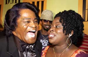 James Brown and Angie Stone, who performed "It's A Man's Man's Man's World" in his honor, share a laugh