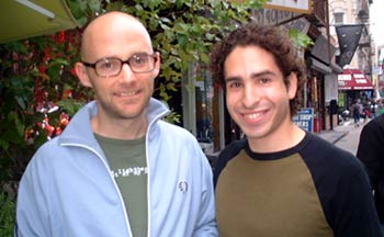 BMI's Eric Miller is seen here with pop/electronica/techno giant Moby in front of the BMI songwriter's bistro, Teany. The popular vegetarian restaurant and teahouse is located on New York's trendy Lower East Side.