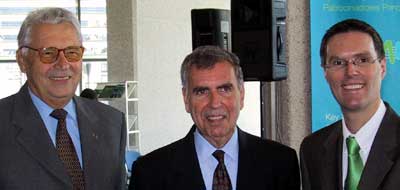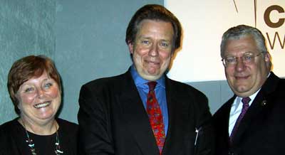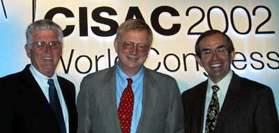 ![]() 2002 CISAC World Congress Keynote Speaker Gerald Levin is congratulated by CISAC President Jean-Loup Tournier and CISAC Secretary General Eric Baptiste following his address to the more than 500 delegates at the Queen Elisabeth II Conference Center in London. Levin, recently retired Chairman of AOL Time Warner, spoke on "The Business of Creativity". |