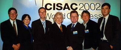 ![]() Frances Preston is joined by members of the 2002 CISAC World Congress panel she moderated and keynoted "Footprints, Fingerprints, Signposts and Links". The panel reviewed the substantial progress in digital tools and international standards in the identification and royalty administration systems for music, text, photography and moving image in the 21st century. From left: Paul Jessop, IFPI;Frances Seghers, SONY;Eric Baptiste,CISAC;Preston;Michael Healy,Nielsen BookData;Mike Laye, Visual Creators Index;Guillaume Gerard,Yacast. |