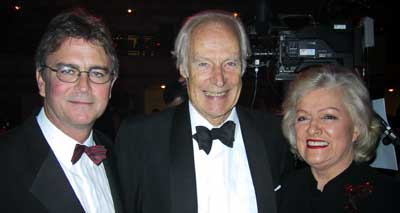 ![]() Sir George Martin is congratulated on receiving the 2002 CISAC Gold Medal by BMI President and CEO Frances Preston and Vice President, Europe, Phil Graham (left) at the gala opening banquet in London's legendary Grosvenor House Great Room. BMI represents the works of Martin in the United States. |