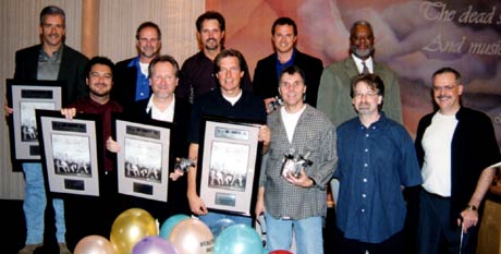 Pictured at BMI Nashville are (front): Diamond Rio's Dana Williams, Gene Johnson and Dan Truman ; writers Sonny LeMaire and Clay Mills, Arista's Bobby Kraig; (back): Diamond Rio's Jimmy Olander, Brian Prout and Marty Roe, writer Shane Minor and BMI's Thomas Cain. photo by Kay Williams