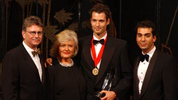 UK resident and BMI affiliated composer Michael Kamen was presented with four awards: the special Olympic Flame Award for his theme to the 2002 Winter Olympics, a Cable Award for his score to HBO’s “Band of Brothers,” a four million performance award for “(Everything I Do) I Do It For You” and a 2001 Film Music Award for his score to “X-Men.” Receiving three awards were Chris Eaton for his Contemporary Christian songs “Adore,” “Lift Me Up,” and “Live For You” (2001), all published by SGO Music Publishing Ltd.; Pamela Sheyne, with 2001 Pop Awards for “He Loves You Not” and “This Is Me,” published by AppleTreeSongs Ltd. and Warner/Chappell Music Ltd., as well as (2002) “Irresistible” (co-written by Anders Bagge of STIM and co-published by EMI Songs Scandinavia AB, STIM); and Mirwais Ahmadzai (PRS/SACEM), with a 2002 Dance Award and Pop Award for “Don’t Tell Me” and a 2001 Pop Award for “Music,” both published by 1000 Lights Music, Ltd. (SACEM) and Warner/Chappell Music Publishing Ltd. (PRS).