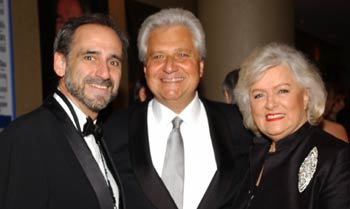 ![]() Patron of the Arts Award recipient Marty Bandier (center) is congratulated by Warner/Chappell's Les Bider and BMI's Frances Preston |