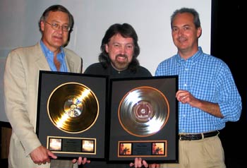 ![]() Pictured at Warner/Reprise's Music Row office are BMI's Ron Solleveld, Blue Miller and Warner/Chappell's Dale Bobo. Photo by Beth Miekos |