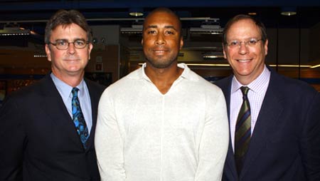 New York Yankees center fielder Bernie Williams (center), the newest member of the BMI family, has just released his debut CD on GRP Records entitled The Journey Within. A collection of original instrumentals and covers of Billy Joel and Kansas songs, the album features such star guests as salsa giant Ruben Blades, jazz banjo master Bela Fleck and salsa legend Gilberto Santa Rosa. A classically trained guitarist, playing and composing music is Bernie's first true passion with influences that include jazz, classical, pop, Brazilian, and the Latin rhythms of his Puerto Rican heritage.