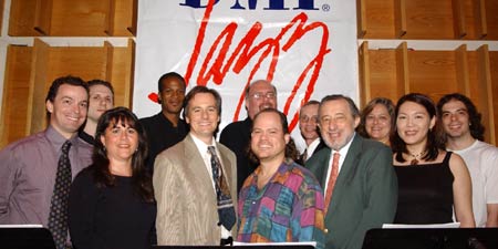 ![]() Seen here after the BMI/New York Jazz Orchestra concert at Merkin Hall are (front row) Charlie Parker Composition Prize winner Jon Schapiro, Workshop composers Anita Brown, Rob Middleton (1999 Charlie Parker Prize winner), Tony Gairo, Don Fornuto and Noriko Ueda (2002 Charlie Parker Prize winner); (back row) Workshop composers J.C. Sanford and Joseph R. Phillips, Jr., Workshop Musical Director Jim McNeely, and Workshop composers Scott Reeves, Deborah Weisz and Darcy James Argue |
