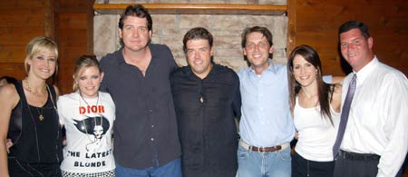 ![]() Pictured are Dixie Chicks Martie Maguire and Natalie Maines, Bruce Robison, Carnival Music's Frank Liddell and Travis Hill, Dixie Chick Emily Robison, and BMI's Mark Mason. Photo by Kay Williams |