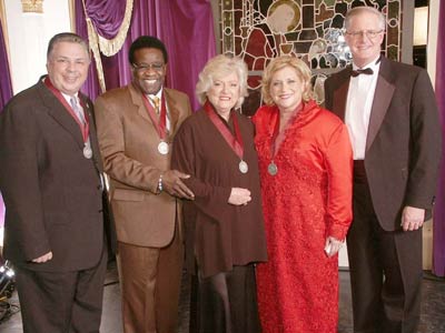 BMI President & CEO Frances Preston joined performers and BMI affiliates Sandi Patty and Al Green, along with the late Vestal Goodman, as the newest members of the Gospel Music Association's Gospel Music Hall of Fame, during ceremonies on February 11. Pat Boone, who was inducted by the GMA in 2002, hosted the show from Trinity Music City, just outside of Nashville. The hour-long special, which featured performances by Patty, Boone, Michael W. Smith and Kristy Starling, was taped for later broadcast on TBN.